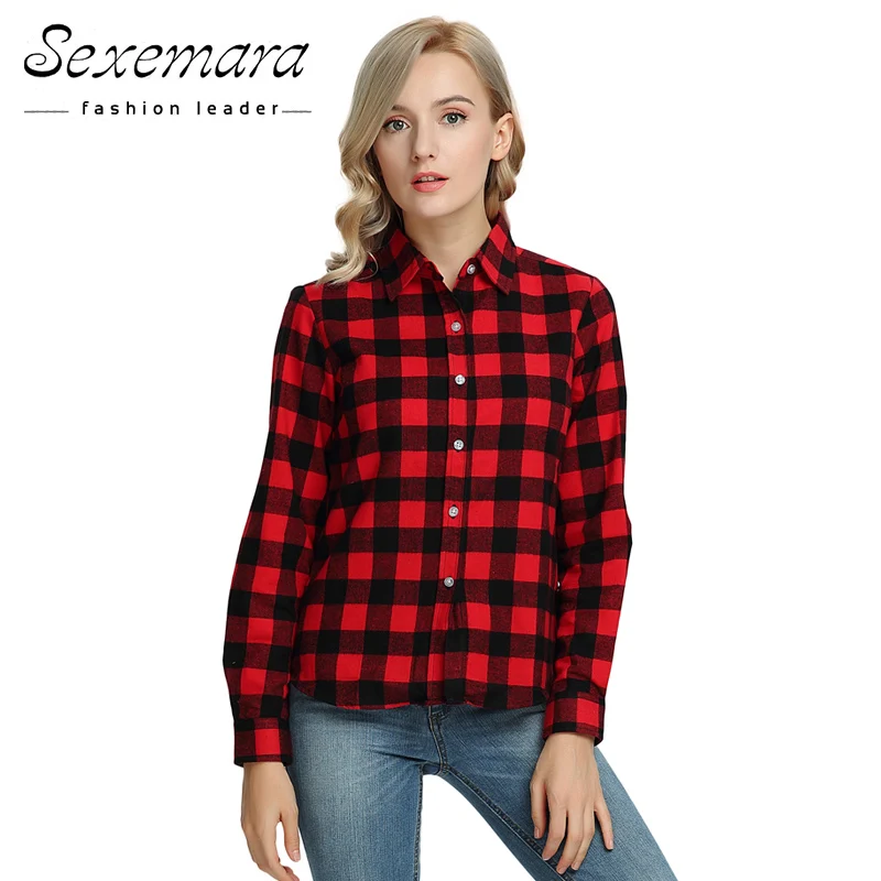 Buy 2019 New Cotton Checkered Plaid Blouses Shirt Cage Female Long Sleeve Casual Slim Women Plus Size S