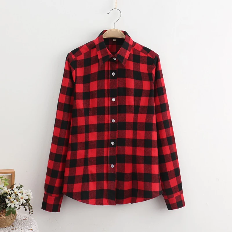 Best 2019 New Cotton Checkered Plaid Blouses Shirt Cage Female Long Sleeve Casual Slim Women Plus Size S