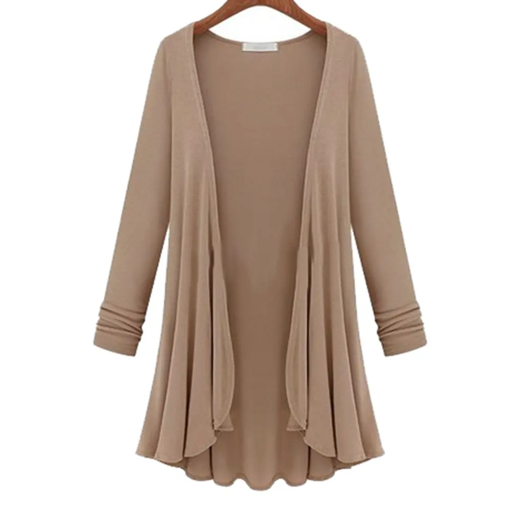 Best 2020 Women Fashion Cotton Top Thin Blouse Long Sleeve Summer Cardigan Sweater Coat Big Size Flounc