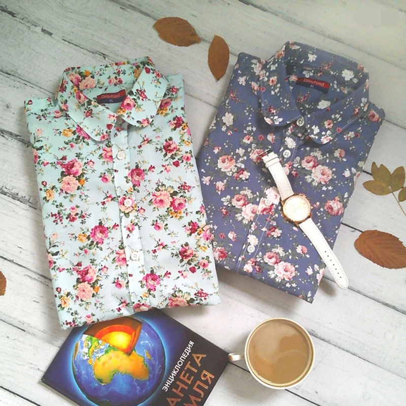 Buy Dioufond Vintage Blouses Women Print Shirts Long Sleeve Cotton Tops Ladies Floral Blusas Plus Size