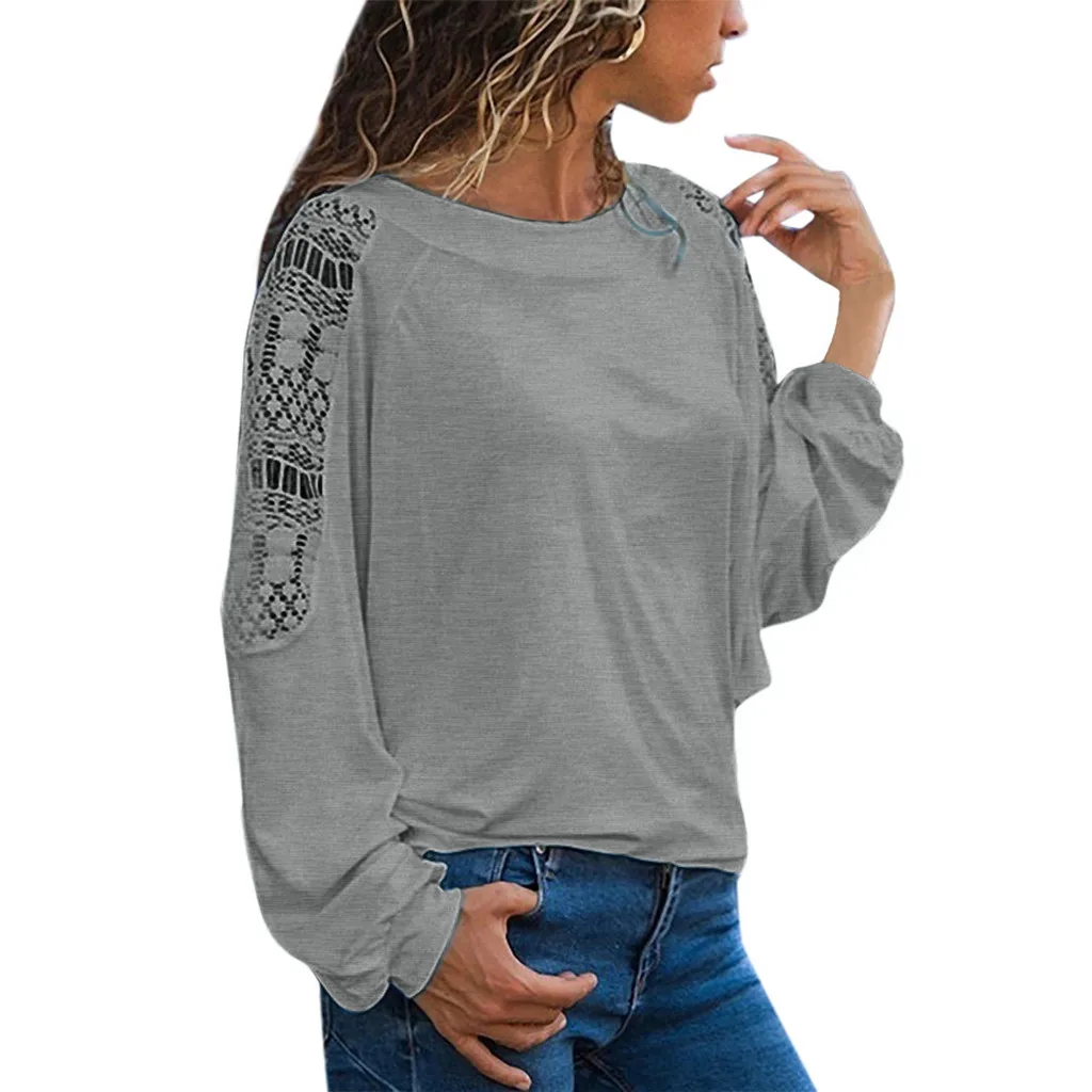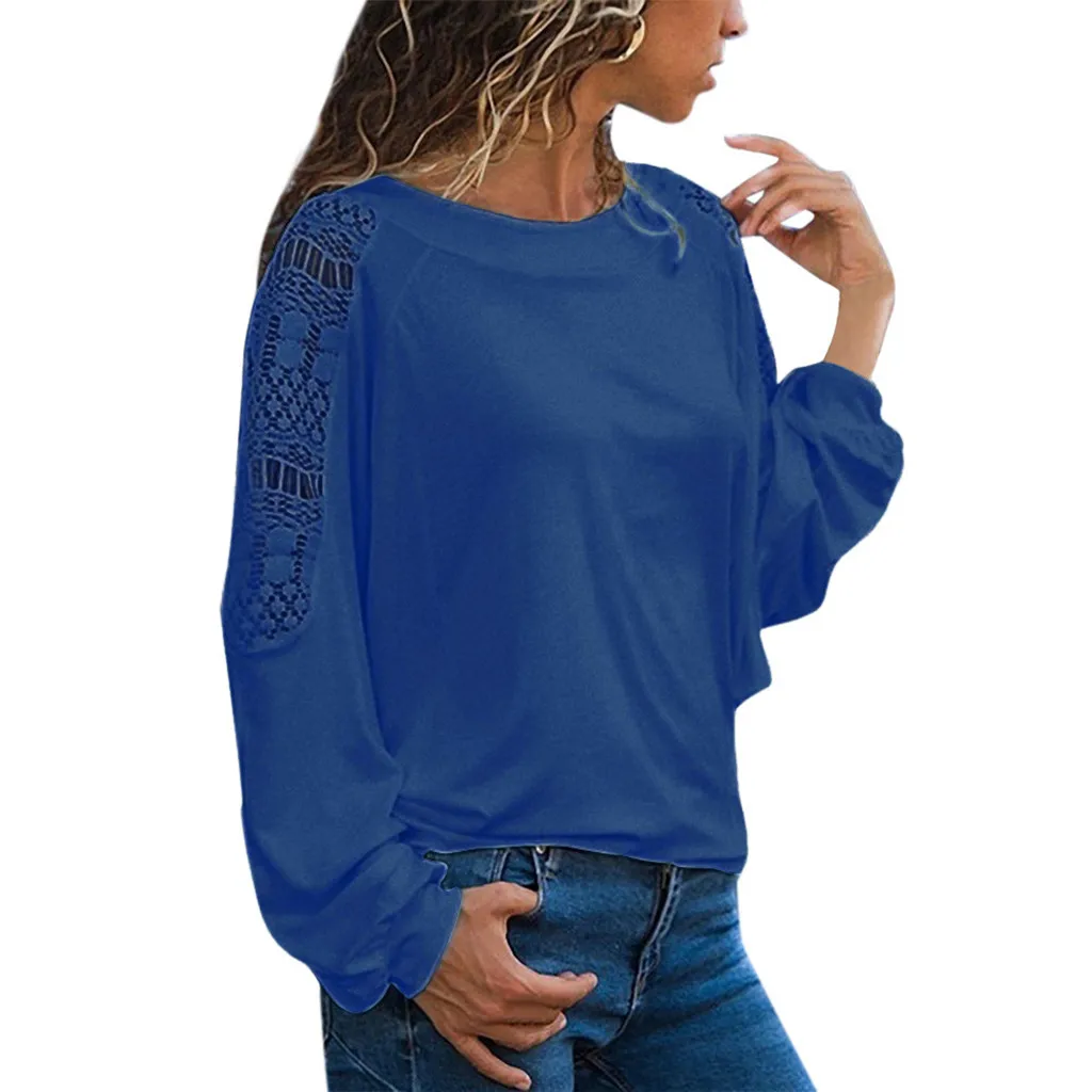 Buy Fashion Blouse Women Shirt Women Long Sleeve Solid Lace Trimmings Hollow Out Loose Women Tops Blous