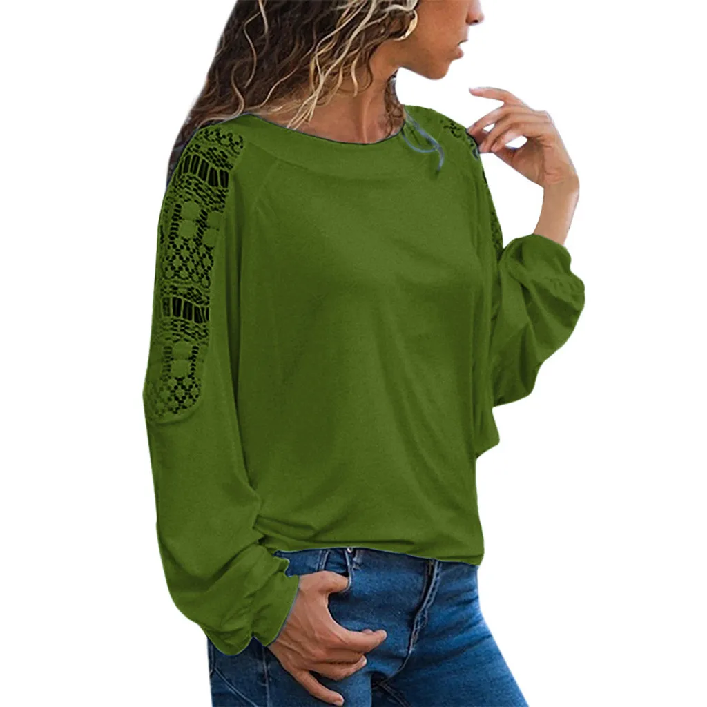 New Fashion Blouse Women Shirt Women Long Sleeve Solid Lace Trimmings Hollow Out Loose Women Tops Blous