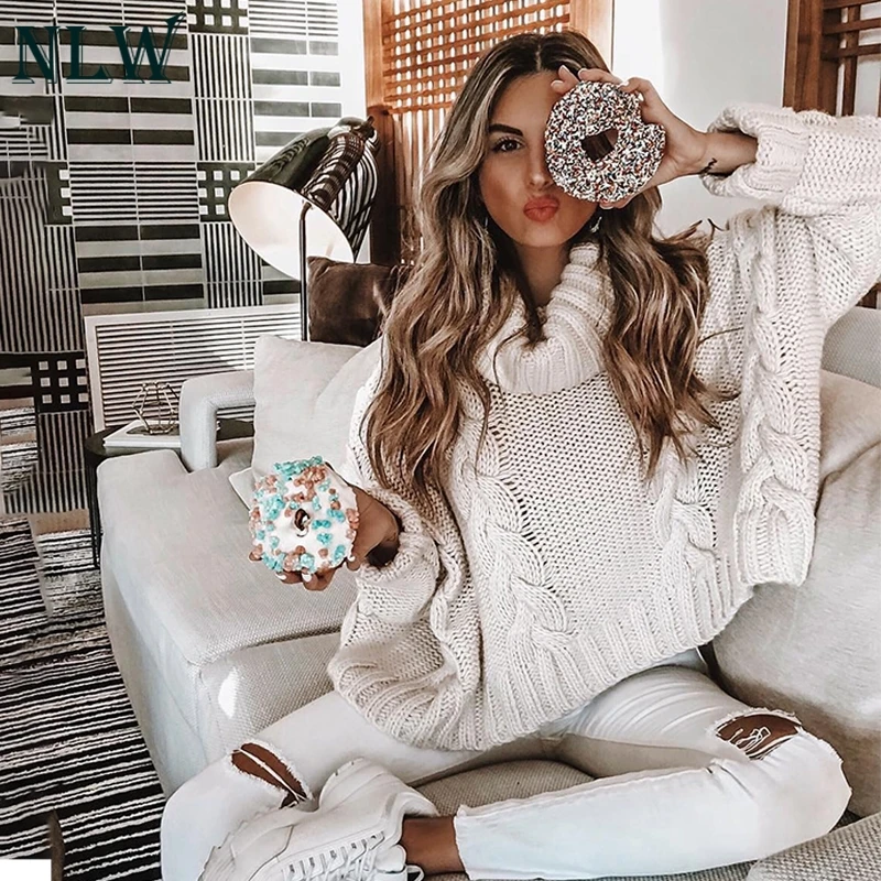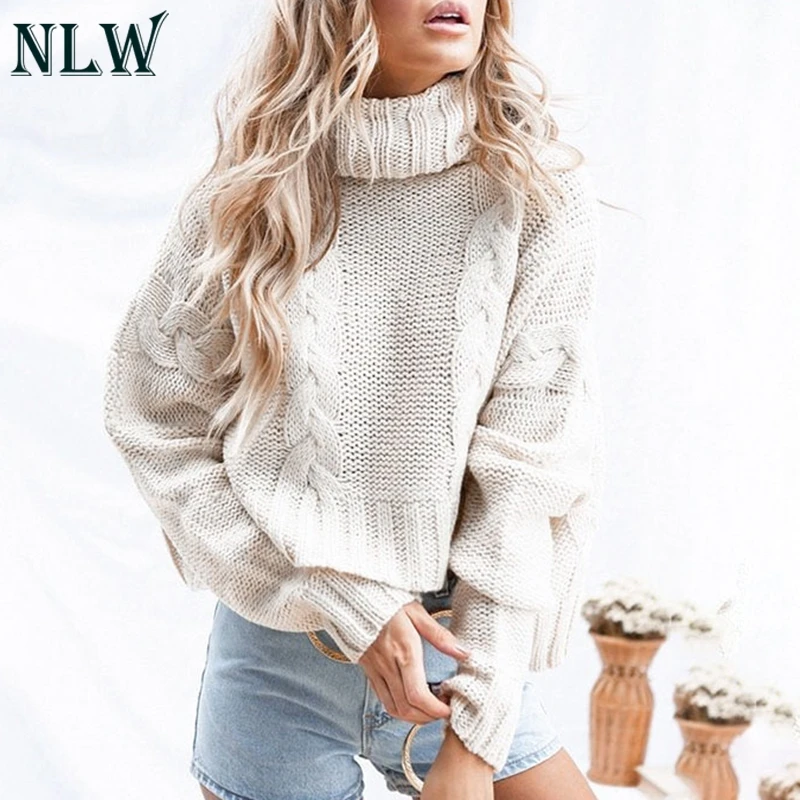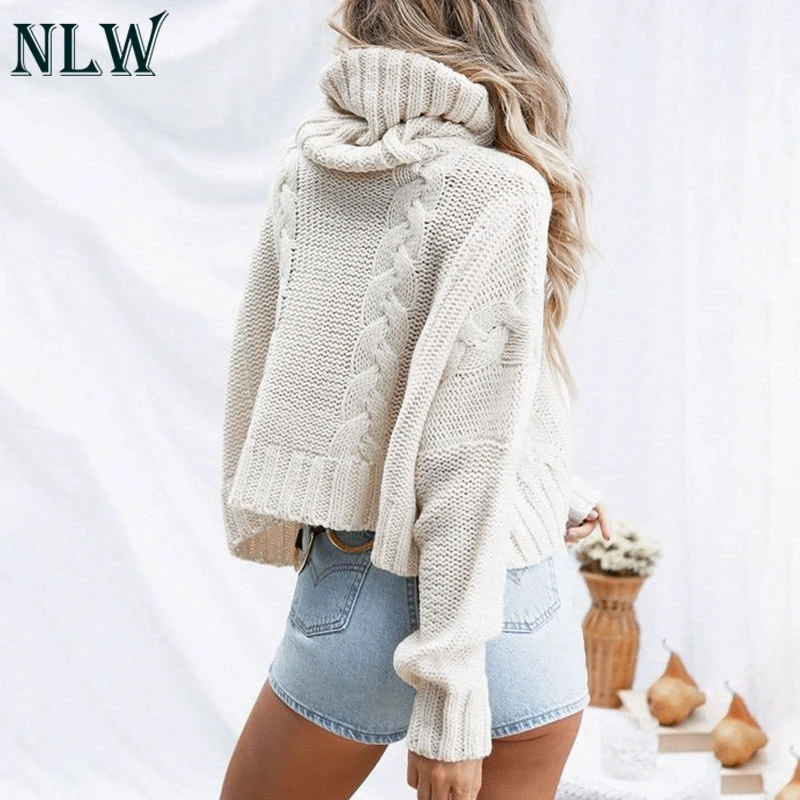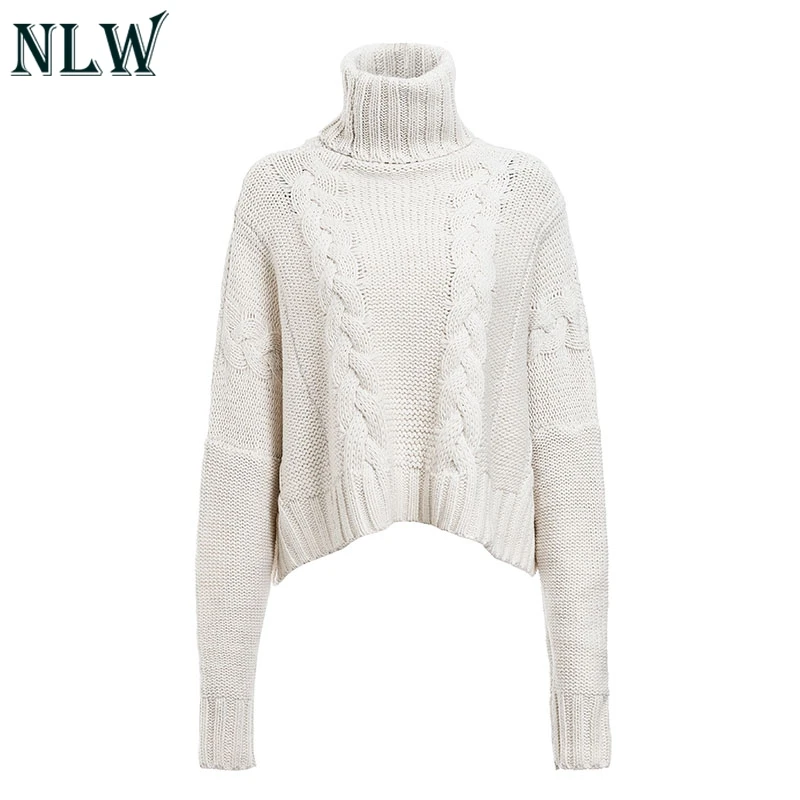 Buy NLW Long Sleeve Turtleneck Crop Sweater 2019 Autumn Winter Thick Solid Harajuku Oversized Pullover