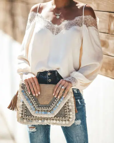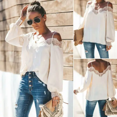 Best 2019 New Hot Summer Fashion Latest Women Sexy Off Shoulder Long Sleeve Lace Patchwork Shirt Casual