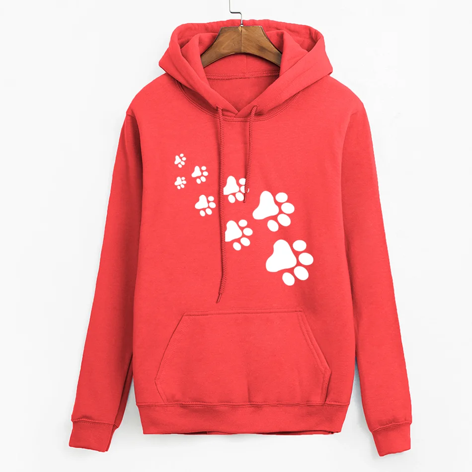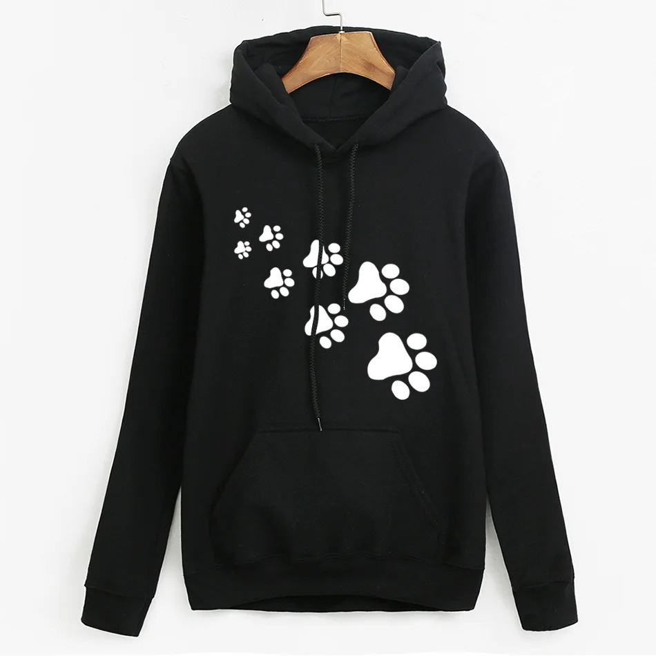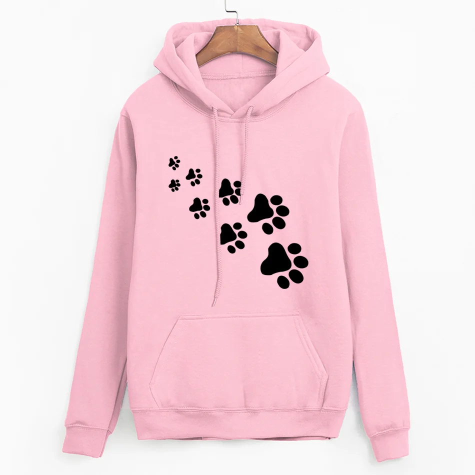 Promo white pink brand tracksuits femme Casual 2019 kawaii cat paws print hoodies for Women fleece autumn