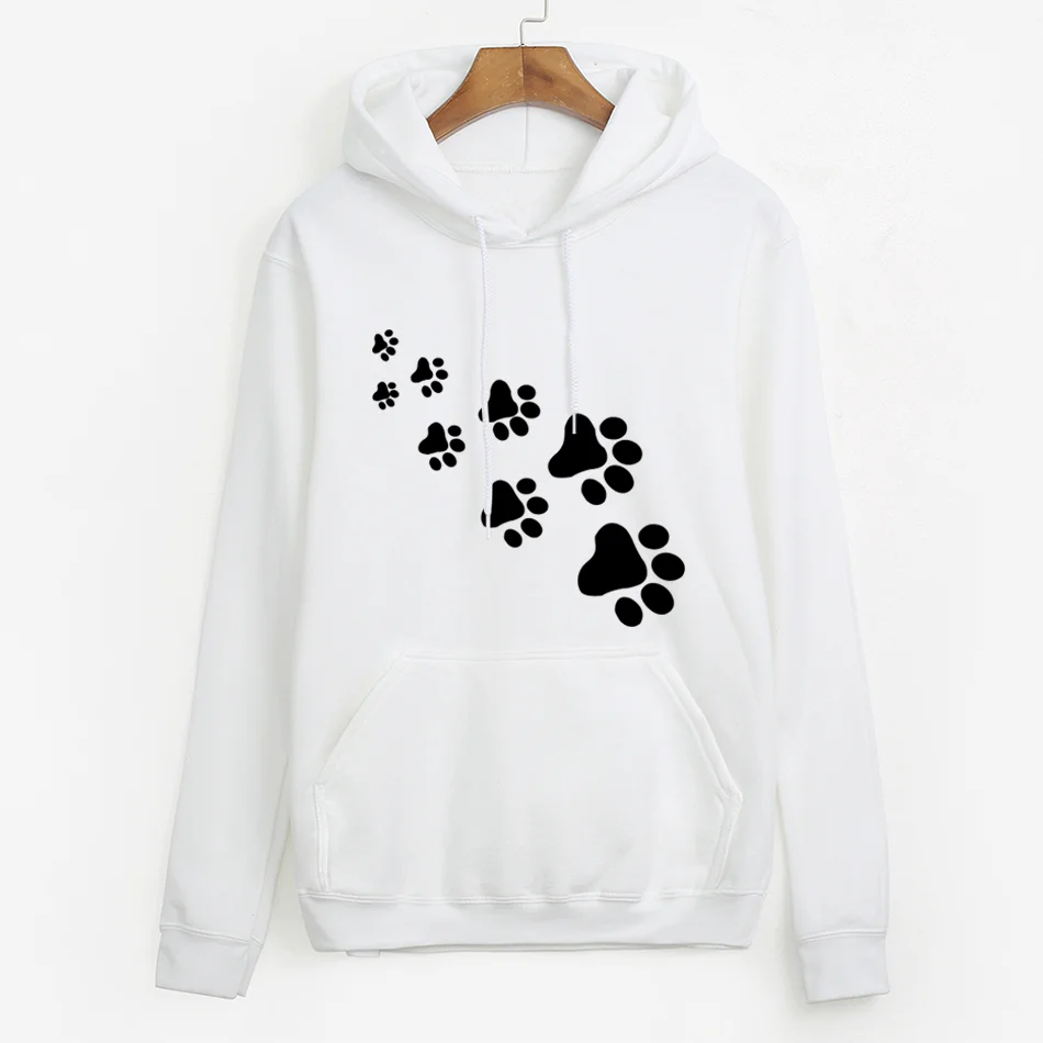 New white pink brand tracksuits femme Casual 2019 kawaii cat paws print hoodies for Women fleece autumn