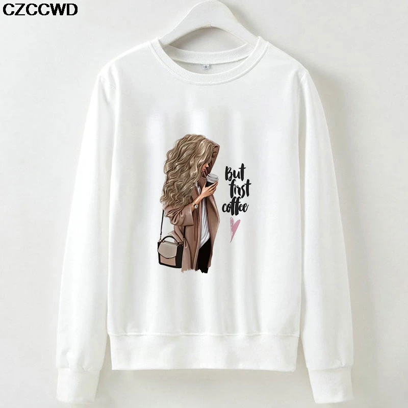New CZCCWD Polerones Mujer 2019 New But First Coffee Fashion Sweatshirt Leisure Streetwear Long Sleeve