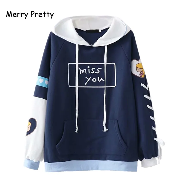 New MERRY PRETTY Women Hooded Sweatshirts 2019 Winter Long Sleeve Letter Print Pullover Tracksuits Femm