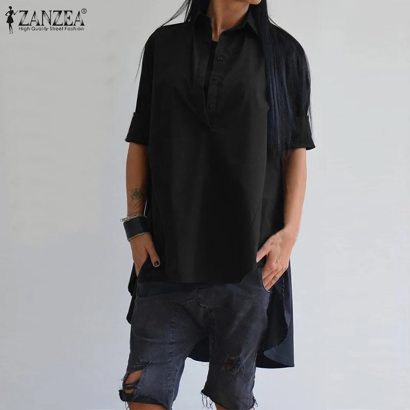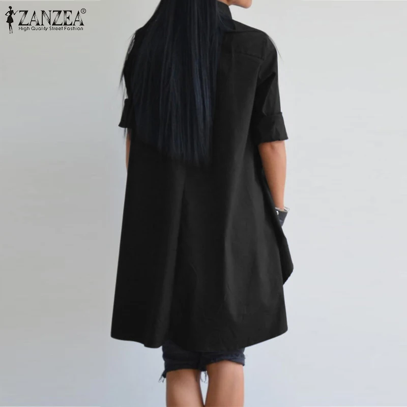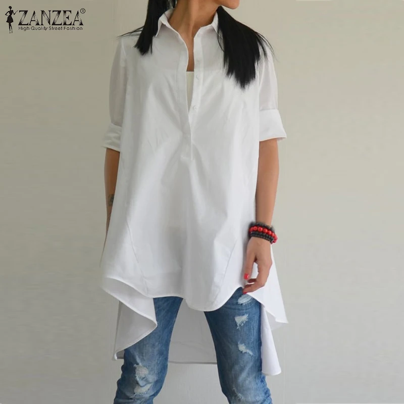 Promo Women Blouse Shirt ZANZEA Ladies Loose Long Sleeve Cotton Shirt Asymmetrical Hem Work Office Tunic