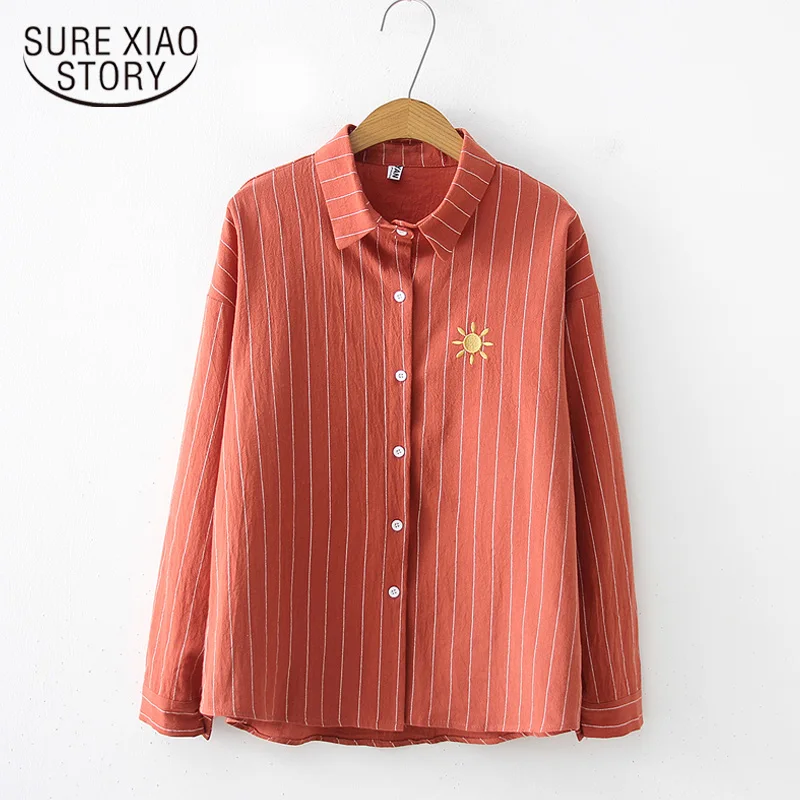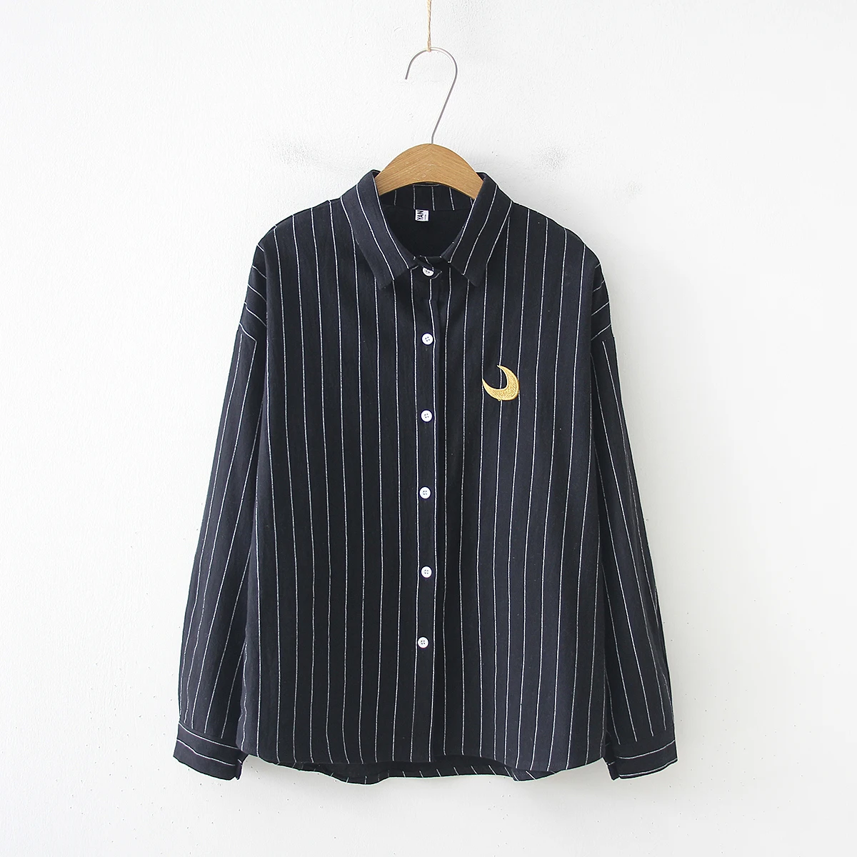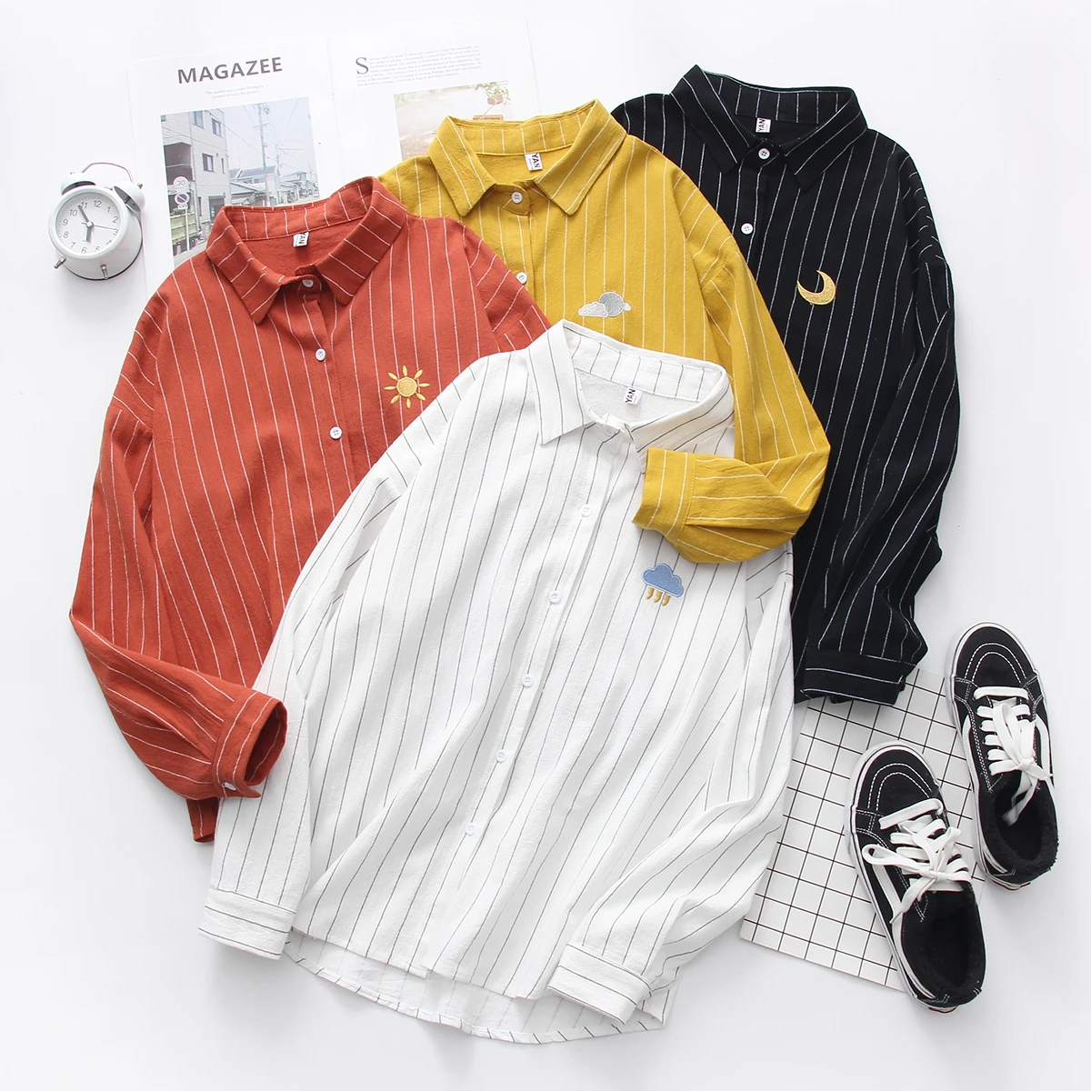 Best Autumn New Japanese Harajuku Style Delicate Embroidery Women Long-sleeved Shirt striped Shirt Girl