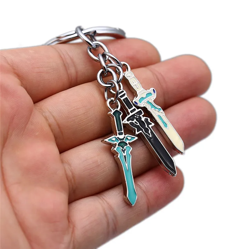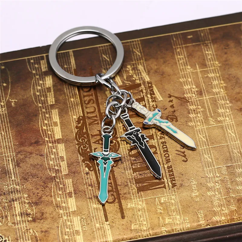 Buy New Anime Sword Art Online Keychain 3pcs Logo Pendants Dnf Cosplay Key Chain Rings Men Gift Chaveir