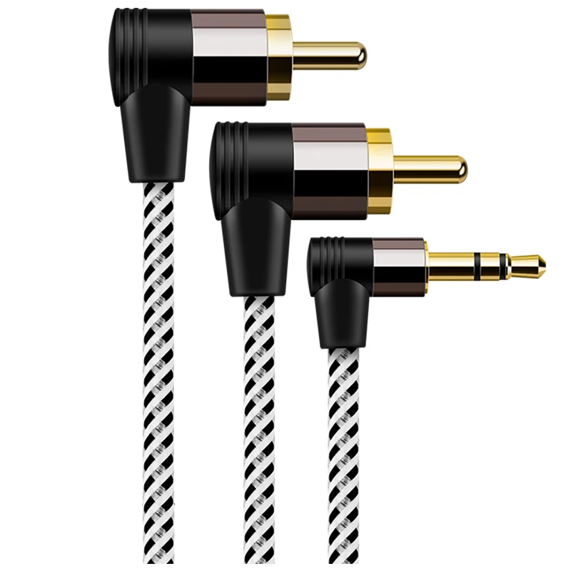 Best 90 Degree Right Angle 3.5MM to RCA Stereo Audio Y Splitter Cbale 2RCA Male to 3.5MM Male Jack RCA A
