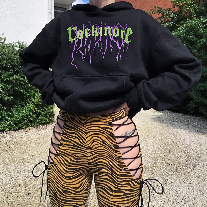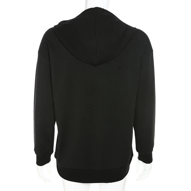 New Rockmore Letter Print Black Long Hoodie Women Gothic Hooed Sweatshirt Oversized Womens Hoodies Swea