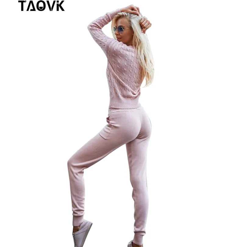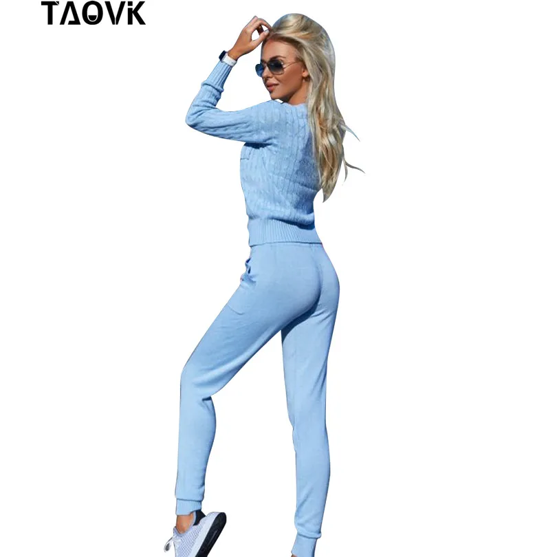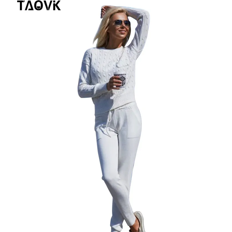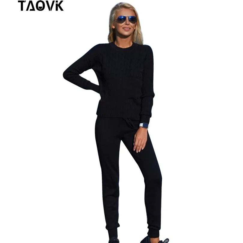 Promo TAOVK Women Sweater Suit and Sets Casual Spring Autumn 2PCS Tracksuit Female Knitted Trousers+Jumpe