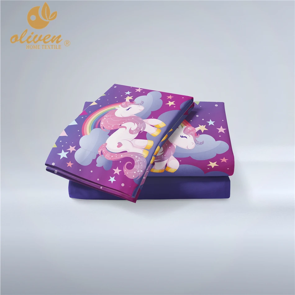 Buy Unicorn Bedding Set Purple Designer Duvet Cover Cartoon Rainbow Animal Printed Bed Line for Girl Pr