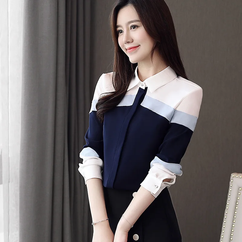 New womens tops and blouses 2019 chiffon blouse shirts women tops long sleeve ladies tops button splice