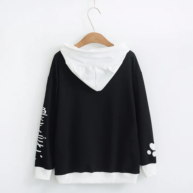 Promo 2019 Women Autumn Fashion Hoodies Pullover Japanese Cat Words Hoodies Harajuku Kawaii Female Black