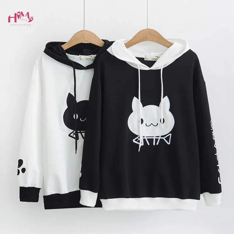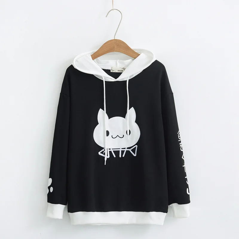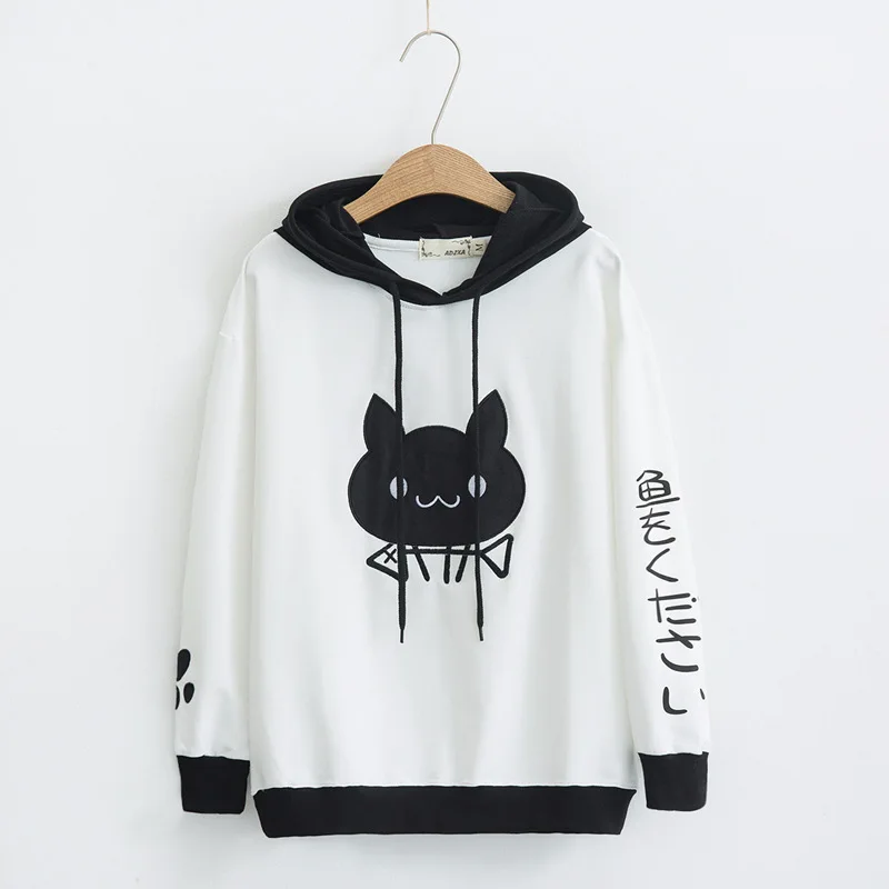 Today i want to review about 2019 Women Autumn Fashion Hoodies Pullover Japanese Cat Words Hoodies Harajuku Kawaii Female Black . I uncover this cool product from China Online Store, best manucafturer.