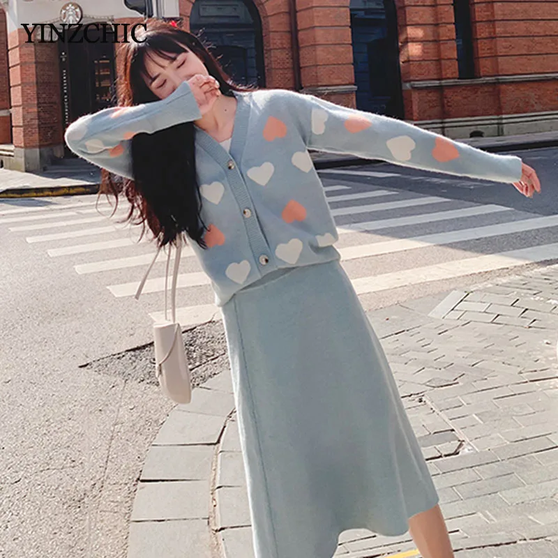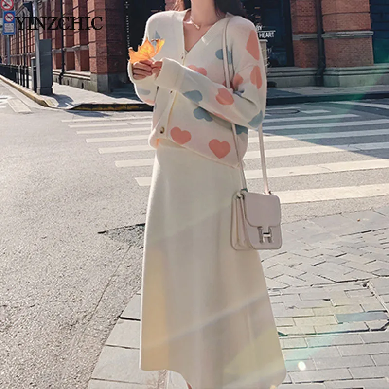 New Autumn New Womans Knitted Set Female Casual Two-pieces Suits Warm Knit Sweater Skirt Sets for Woman
