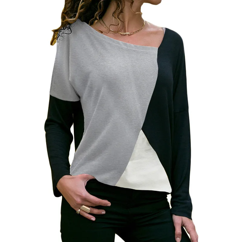 Best Women Color Block Patchwork Blouse Autumn Long Sleeve O-Neck Casual Shirt Female Elegant Blouse Shi